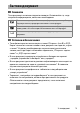 ● Лазери и други източници на ярка светлина Не насочвайте лазери и други източници на изключително ярка светлина към обектива, тъй като това може да повреди сензора за изображения на фотоапарата. ● Почистване При почистване на тялото на фотоапарата използвайте гумена круша, за да премахнете праха и власинките, след което попийте внимателно с мека, суха кърпа. След използване на фотоапарата на плажа или на брега, почистете пясъка с кърпа, леко напоена в чиста вода, и след това подсушете щателно фотоапарата.