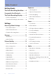 Table of Contents, Continued Controls and Displays.................... 47 ● Timecode............................................................... 47 ● Reverse Ring for Focus...................................... 48 ● Focus Ring Rotation Range............................. 48 ● Control Ring Response...................................... 49 ● Customize i Menu........................................... 49 ● Custom Controls.................................................. 52 ● Control Lock...................