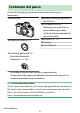 Comandi della fotocamera Mirino ・ Posizionando l'occhio sul mirino si attiva il sensore oculare, che sposta la visualizzazione dal monitor al mirino. Si noti che il sensore oculare risponderà anche ad altri oggetti, come le dita. ・ Il mirino può essere utilizzato per i menu e la riproduzione, se lo si desidera. D Il controllo di regolazione diottrica ・ Il mirino può essere messo a fuoco ruotando il controllo di regolazione diottrica. ・ Fare attenzione a non mettere le dita o le unghie negli occhi.