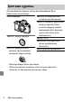 Фотокамераның бөлшектері Фотокамера корпусы 1 Фотокамера бауына 2 3 4 5 6 7 8 арналған тесік ISO сезімталдығының дөңгелекшесі ISO сезімталдығы дөңгелекшесінің құлпын босату Стерео микрофон Ысырма жылдамдығының дөңгелекшесі Ысырма жылдамдығы дөңгелекшесінің құлпын босату Қуат ажыратқышы Ысырманы босату түймешігі 9 Бейнефильмді жазу түймешігі 10 E (фокустық жазықтық таңбасы) 11 Экспозиция түзетілімінің дөңгелекшесі 12 Басқару панелі 13 Фотосурет/бейнефильм ауыстырғышы 14 Керек-жарақтарға арналған құр