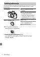 Kada vaša prva fotografija ne može da sačeka ❚ ❚Priprema za upotrebu 1 Umetnite bateriju i memorijsku karticu (026). Za informacije o punjenju baterije pogledajte odeljak „Punjenje baterije“ (025). 2 Pričvrstite objektiv (029). ・ Poravnajte indikator na telu fotoaparata sa indikatorom na objektivu (q) i rotirajte objektiv u prikazanom pravcu (w). ・ Na fotoaparat može da se pričvrsti kaiš. Za više informacija pogledajte odeljak „Pričvršćivanje kaiša“ (024).