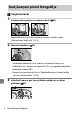 ❚ ❚Attēlu uzņemšana (035) un skatīšana (043) 1 Pagrieziet režīma atlasītāju pozīcijā AUTO (Automātiski) (b). 2 3 4 Lai fokusētu, nospiediet aizvara atbrīvošanas pogu līdz pusei (t.i., viegli spiediet aizvara atbrīvošanas pogu un pārstājiet spiest, kad tā nospiesta līdz pusei). Lai uzņemtu attēlu: nepaceļot pirkstu, nospiediet no aizvara atbrīvošanas pogu līdz galam. Skatiet attēlu.