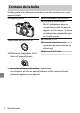 1 Commande de réglage 2 3 4 5 6 7 8 9 10 dioptrique Commande A (g) Molette de commande principale Commande i 13 Loquet du volet du logement pour carte mémoire/ accumulateur 14 Loquet de l’accumulateur 15 Logement pour carte mémoire 16 Filetage pour fixation sur Commande J Sélecteur multidirectionnel Commande DISP Commande G Commande W (Q) Voyant d’accès à la carte mémoire 11 Commande X 12 Volet du logement pour carte mémoire/accumulateur 17 18 19 20 21 22 23 trépied Moniteur Commande M Commande O Com