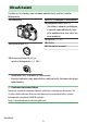Ovládání fotoaparátu Hledáček ・ Přiložením oka k hledáčku se aktivuje oční senzor a přepne zobrazení z monitoru na hledáček. Všimněte si, že oční senzor bude reagovat i na jiné předměty, jako jsou vaše prsty. ・ Hledáček lze v případě potřeby použít pro nabídky a přehrávání. D Ovládání dioptrické korekce ・ Hledáček lze zaostřit otáčením ovladače dioptrické korekce. ・ Dávejte pozor, abyste si nevrazili prsty nebo nehty do oka.