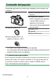 Controles de la cámara Visor ・ Al colocar su ojo en el visor activará el sensor de movimiento ocular, cambiando de la visualización de la pantalla a la del visor. Tenga en cuenta que el sensor de movimiento ocular también responde a otros objetos, como sus dedos. ・ El visor se puede usar para los menús y reproducción, si lo desea. D El control de ajuste dióptrico ・ Puede enfocar el visor girando el control de ajuste dióptrico. ・ Tenga cuidado para no meterse los dedos o las uñas en los ojos.