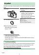 Saat Anda tidak sabar menantikan foto pertama ❚ ❚Penyiapan 1 Masukkan baterai dan kartu memori (079). Untuk informasi tentang pengisian daya baterai, lihat "Mengisi daya baterai" (078). 2 Pasang lensa (082). ・ Sejajarkan indikator pada badan kamera dengan indikator pada lensa (q) dan putar lensa ke arah yang ditunjukkan (w). ・ Sebuah tali dapat dipasangkan ke kamera. Untuk informasi selengkapnya, lihat "Memasang tali" (077). 3 Nyalakan kamera lalu pilih bahasa dan atur jam (085).