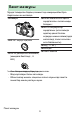 Сіздің алғашқы фотосуретіңіз күте алмайтын кезде ❚ ❚Дайындалу 1 Батарея мен жад картасын салыңыз ( 0 83 ). Батареяны зарядтау туралы ақпаратты «Батареяны зарядтау» бөлімінен қараңыз ( 0 81 ). 2 Объективті бекіту ( 0 87 ). ・ Камера корпусындағы индикаторды объективтегі индикатормен ( q ) туралаңыз жəне объективті көрсетілген бағытта бұрыңыз ( w ). ・ Камераға бауды бекітуге болады. Қосымша ақпаратты «Бауды бекіту» бөлімінен қараңыз ( 0 80 ).