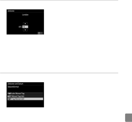Zone und den Unterschied zwischen der ausgewählten Zeitzone