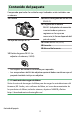Controles de la cámara Visor ・ Al colocar su ojo en el visor activará el sensor de movimiento ocular, cambiando de la visualización de la pantalla a la del visor. Tenga en cuenta que el sensor de movimiento ocular también responde a otros objetos, como sus dedos. ・ El visor se puede usar para los menús y reproducción, si lo desea. D El control de ajuste dióptrico ・ Puede enfocar el visor girando el control de ajuste dióptrico. ・ Tenga cuidado para no meterse los dedos o las uñas en los ojos.