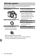 Фотокамераның бөлшектері Фотокамера корпусы 1 Фотокамера бауына 2 3 4 5 6 7 8 арналған тесік ISO сезімталдығының дөңгелекшесі ISO сезімталдығы дөңгелекшесінің құлпын босату Стерео микрофон Ысырма жылдамдығының дөңгелекшесі Ысырма жылдамдығы дөңгелекшесінің құлпын босату Қуат ажыратқышы Ысырманы босату түймешігі 9 Бейнефильмді жазу түймешігі 10 E (фокустық жазықтық таңбасы) 11 Экспозиция түзетілімінің дөңгелекшесі 12 Басқару панелі 13 Фотосурет/бейнефильм ауыстырғышы 14 Керек-жарақтарға арналған құр