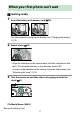 ● Folder contains no pictures. ・ Folder contains no images. - Insert memory card that contains pictures. ・ No pictures in folder selected for playback. - Use [Playback folder] item in playback menu to select folder that contains pictures. ● Cannot display this file. ・ File has been modified using computer application or does not conform to DCF file standard. ・ File is corrupt. - Do not overwrite images using computer applications. ● Cannot select this file. Selected picture cannot be retouched.
