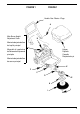 Assembly Ensamblaje 1 Pull upward on the recessed handle molded into the hopper and lift the hopper off the machine. 1 Levantar el depósito de la máquina tirando del asa. 2 2 Packed inside the hopper are all items needed for the complete machine assembly, belt, side broom, side broom arm assembly and hardware package (excluding the handle that is packed separately).