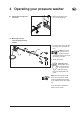 4 Operating your pressure washer 4.1 Connection of high pressure hose 1. Mount the high pressure hose on the outlet (3). 4.2 Mounting of spray lance and Click & Clean nozzles 1. Push the spray lance (6) into the spray gun (7) and screw it on. Note: The spray lance (6) has a built-in low pressure nozzle that can be used for flushing away dirt. 2. Attach the nozzle. Warning: When attaching the Click & Clean nozzles, the pawl on the side of the spray lance (6) should come out again.
