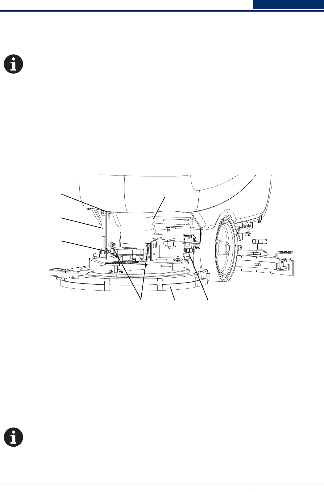 Ontkoppel de elektrische aansluiting (D) van de motoren voor de borstels/padhouder.5.