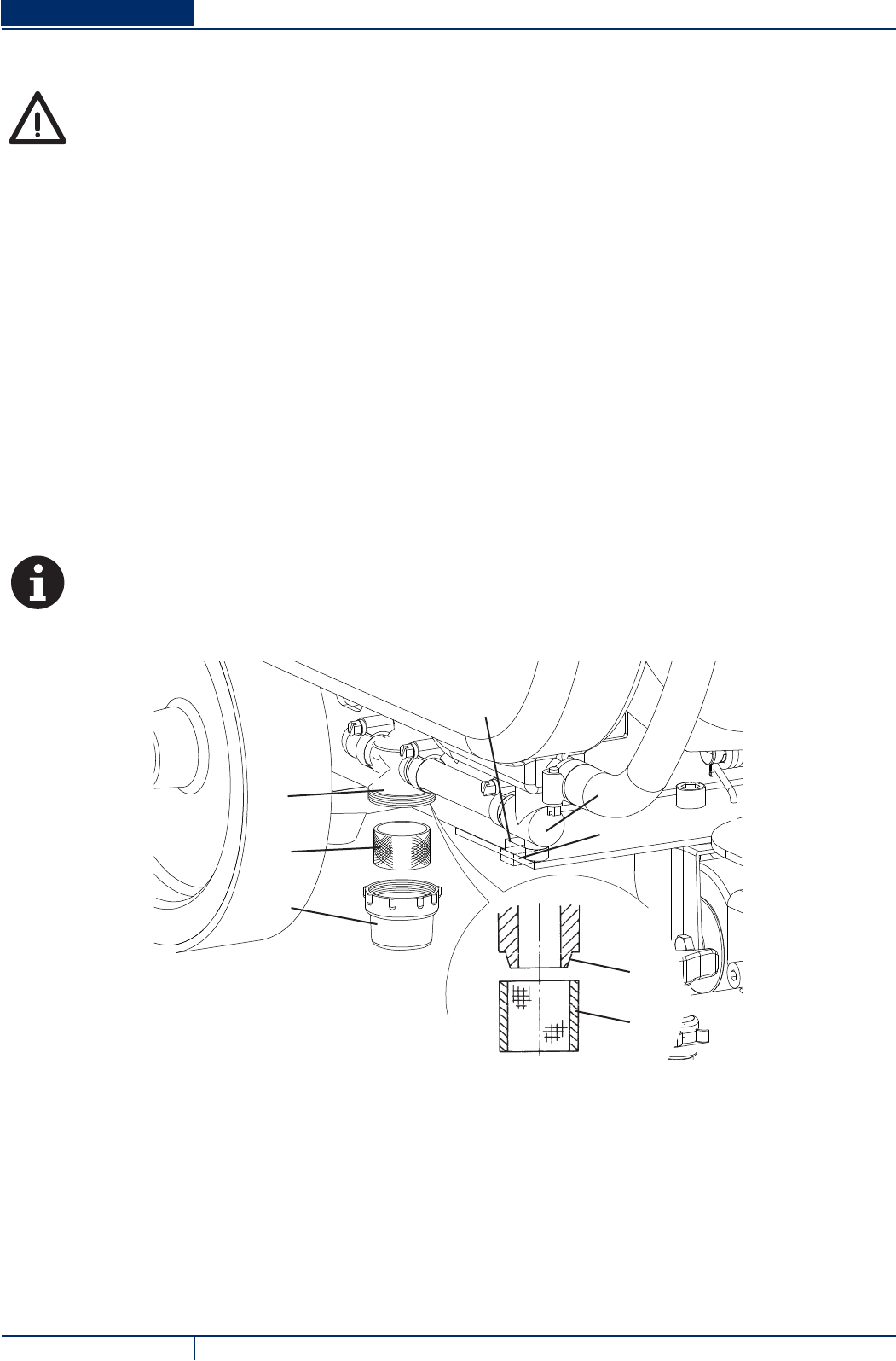 The fi lter strainer (E) must be correctly positioned on the housing (G) of the support (F).