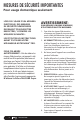 AVANT LA PREMIÈRE UTILISATION VEUILLEZ GARDER À L’ESPRIT CES DIRECTIVES DE SÉCURITÉ IMPORTANTES LORSQUE VOUS UTILISEZ L’APPAREIL : IMPORTANT : Les accessoires sont interchangeables. MISE EN GARDE : Les lames sont coupantes! Soyez extrêmement prudent lorsque vous manipulez les jeux de lames. Manipulez toujours les jeux de lames en tenant l’arbre. IMPORTANT : Ne faites pas fonctionner l’appareil à vide. MISE EN GARDE : NE MÉLANGEZ PAS DES ALIMENTS OU DES LIQUIDES CHAUDS.