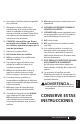 8. Use siempre el artefacto sobre una superficie seca y nivelada. 19. NO exponga las tazas a cambios bruscos de temperatura. 9. Mantenga sus manos, cabello, ropa y utensilios fuera de la taza al procesar para reducir la posibilidad de daños graves a personas o de dañar la unidad. Puede utilizar una espátula, pero únicamente cuando el artefacto no esté funcionando. 20. CUIDADO: NO PROCESE COMIDA O LÍQUIDOS CALIENTES. 10. CUIDADO: Las cuchillas son filosas, manéjelas con cuidado.