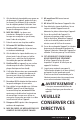 9. Afin de réduire le risque de blessures graves ou de dommages à l’appareil, gardez les mains, les cheveux, les vêtements et les ustensiles hors du récipient pendant l’utilisation. Vous pouvez utiliser une raclette, mais seulement lorsque le mélangeur est éteint. 10. MISE EN GARDE : Les lames sont tranchantes. Manipulez-les avec soin. Lorsque vous manipulez un jeu de lames, tenez l’arbre de cette pièce. 12 NE tentez PAS d’affûter les lames. 13.