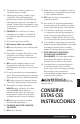 Guía de diagnóstico de problemas PROBLEMAS POSIBLE CAUSA Y SOLUCIÓN Verifique que el recipiente esté correctamente colocado sobre la base del motor. Verifique que la tapa esté colocada en el recipiente en la posición correcta (flechas alineadas). El artefacto está apagado. Presione el botón de encendido ( ) para encenderlo. El motor no arranca o los accesorios no rotan. Verifique que el cable esté bien enchufado en el tomacorriente. Verifique su fusible o la llave general. La unidad se recalentó.