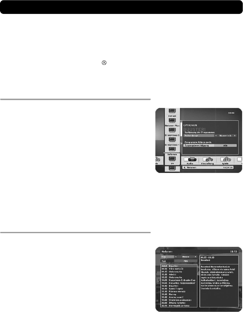 Fernsehen auf das Programmverzeichnis (EPG, Electronic
