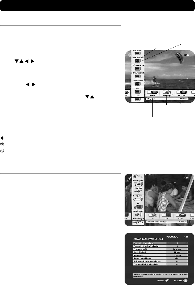 Navi Bars används för att välja TV/Radio-kanaler och för att öppna