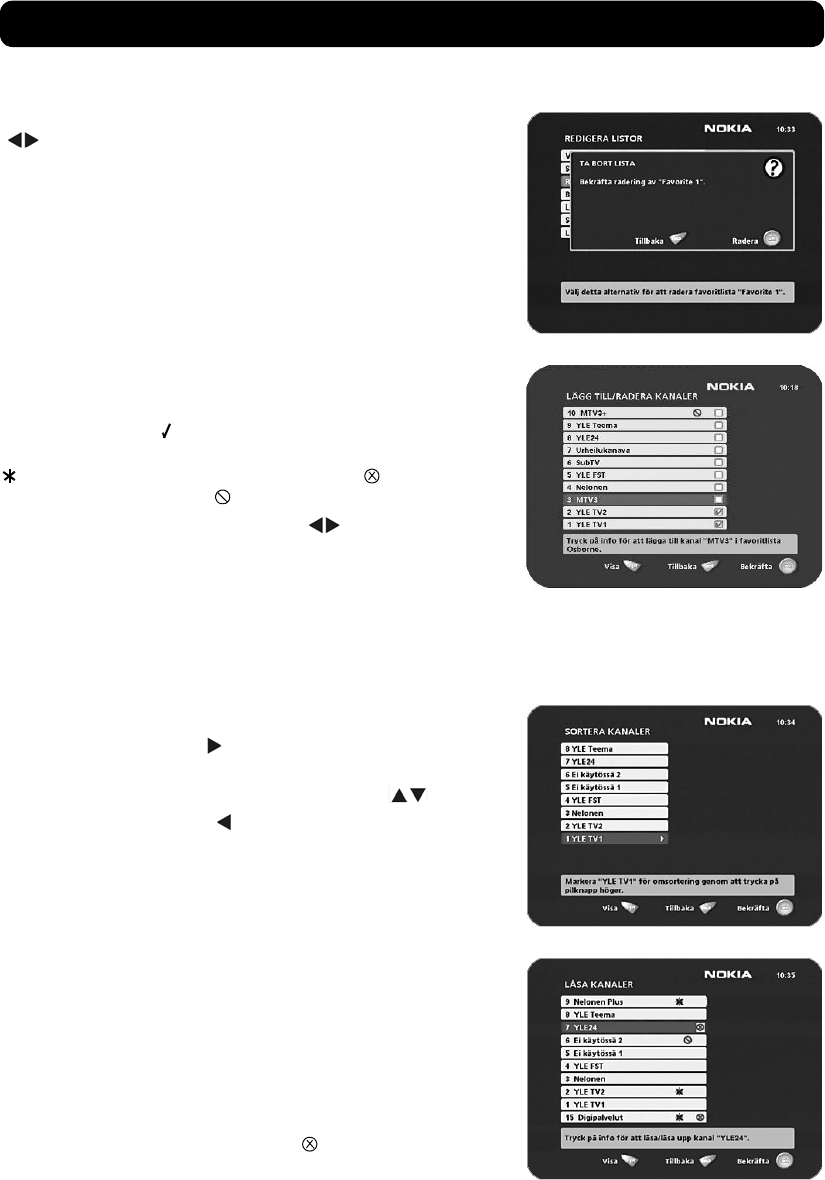 I den här menyn kan du lägga till eller ta bort kanaler i dina listor.
