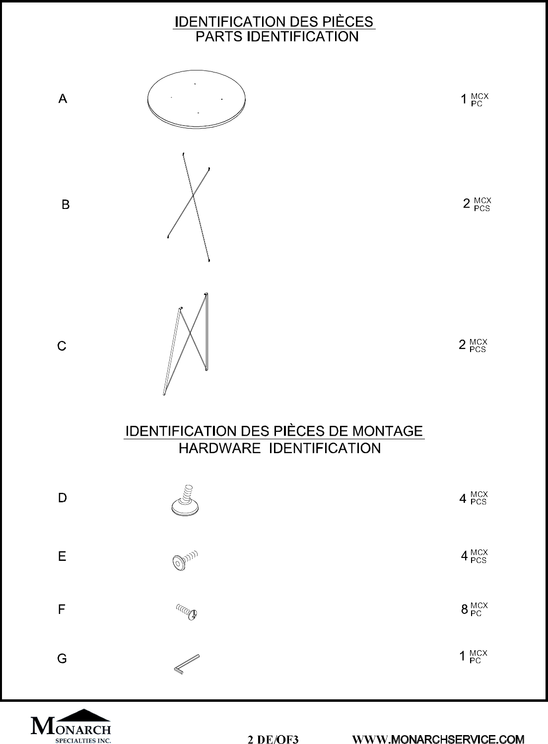 INSTRUCTIONS D'ASSEMBLAGE