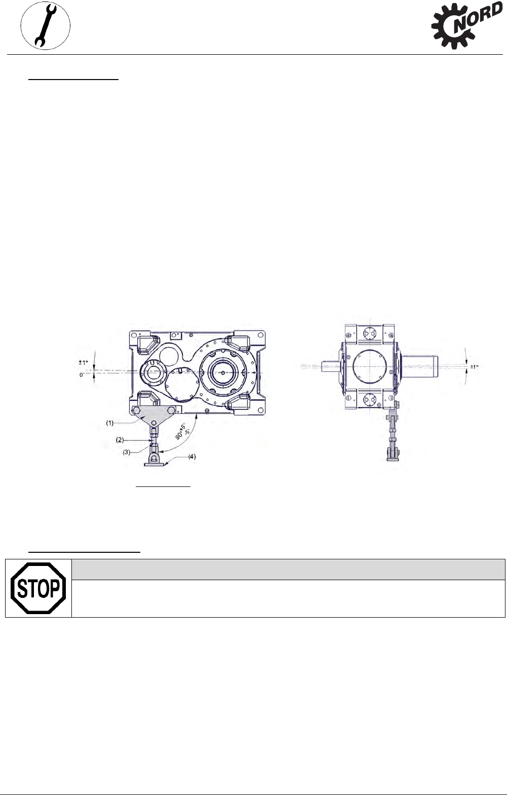 The gear unit is aligned horizontally with the threaded bolt and the nuts of the torque support