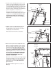 1. Make sure that the power cord is unplugged. 1 With the help of a second person, carefully tip the treadmill onto its left side. Partially fold the Frame (56) so that the treadmill is more stable; do not fully fold the Frame yet. B A 83 Hole 38 81 Remove and discard the two indicated bolts (A) and the shipping bracket (B). 2 Tie Cut the ties securing the Upright Wire (38) to the Base (83). Locate the tie in the indicated hole in the Base, and use the tie to pull the Upright Wire out of the hole.