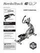 BEFORE YOU BEGIN Thank you for selecting the revolutionary NORDICTRACK® E 8.7 elliptical. The E 8.7 elliptical provides an impressive selection of features designed to make your workouts at home more effective and enjoyable. reading this manual, please see the front cover of this manual. To help us assist you, note the product model number and serial number before contacting us. The model number and the location of the serial number decal are shown on the front cover of this manual.