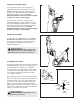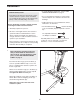 ADJUSTING THE RESISTANCE To increase the resistance, first squeeze the Adjustment Handle (12). Next, lift the end of the Adjustment Handle and move it away from the Backrest (23). When the Adjustment Handle is in the desired position, release it. Push the Adjustment Handle forward or backward slightly to make sure that it is fully engaged. 12 23 To decrease the resistance, first squeeze the Adjustment Handle (12). Next, push down on the end of the Adjustment Handle and move it toward the Backrest (23).