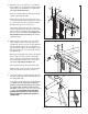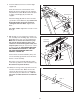 5. With the help of a second person, carefully tip the treadmill onto its right side. Partially fold the Frame (56) so the treadmill is more stable; do not fully fold the Frame yet. 5 B A Remove and discard the two indicated bolts (A) and the shipping bracket (B). 83 81 Attach a Base Pad (81) to the Base (83) in the location shown with a Base Pad Spacer (13) and a 1" Tek Screw (2). Then, attach another Base Pad (81) with only a 1" Tek Screw (2).