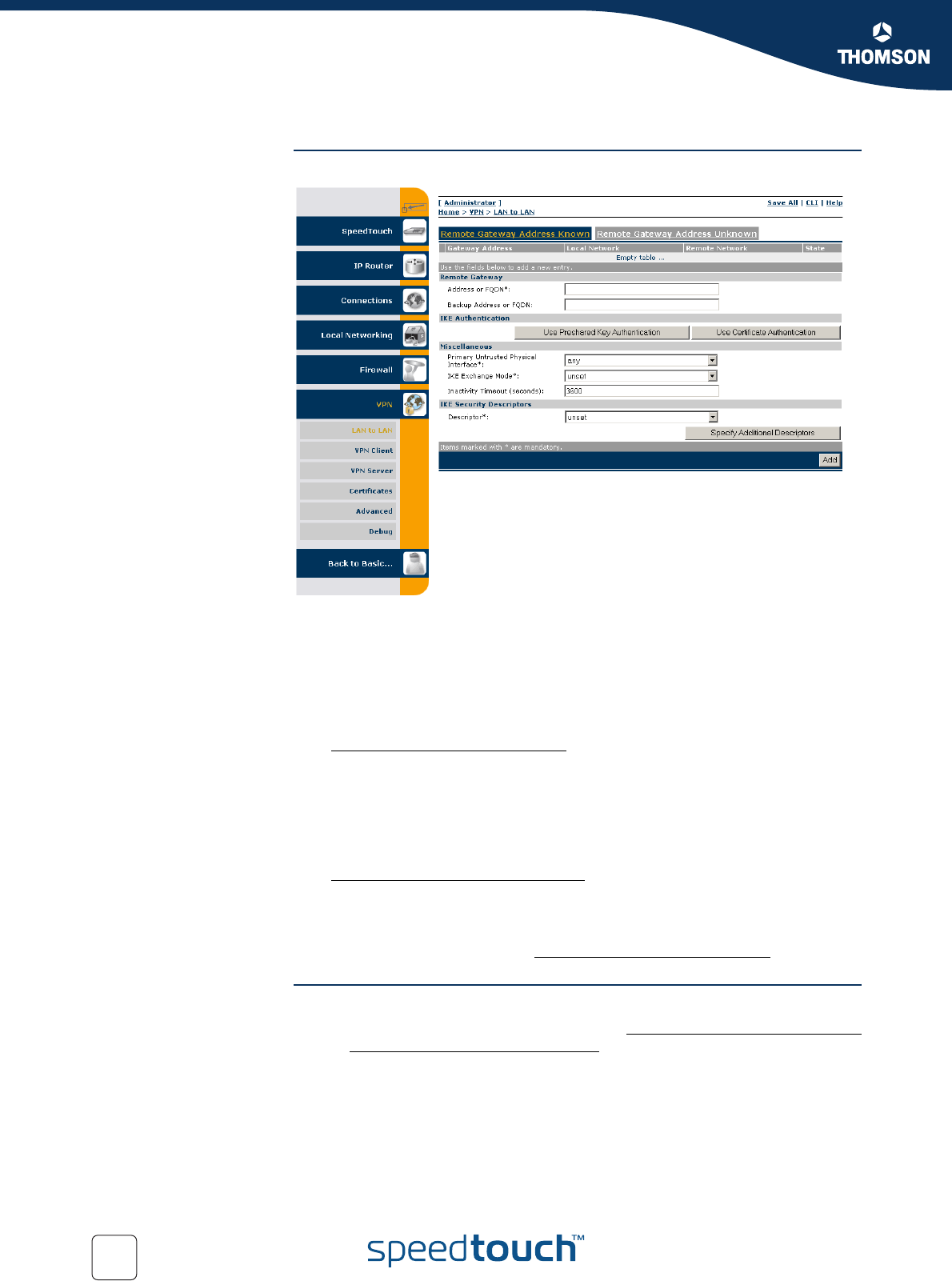 Gateway, your SpeedTouch™ can either take the initiative to set up an IPSec