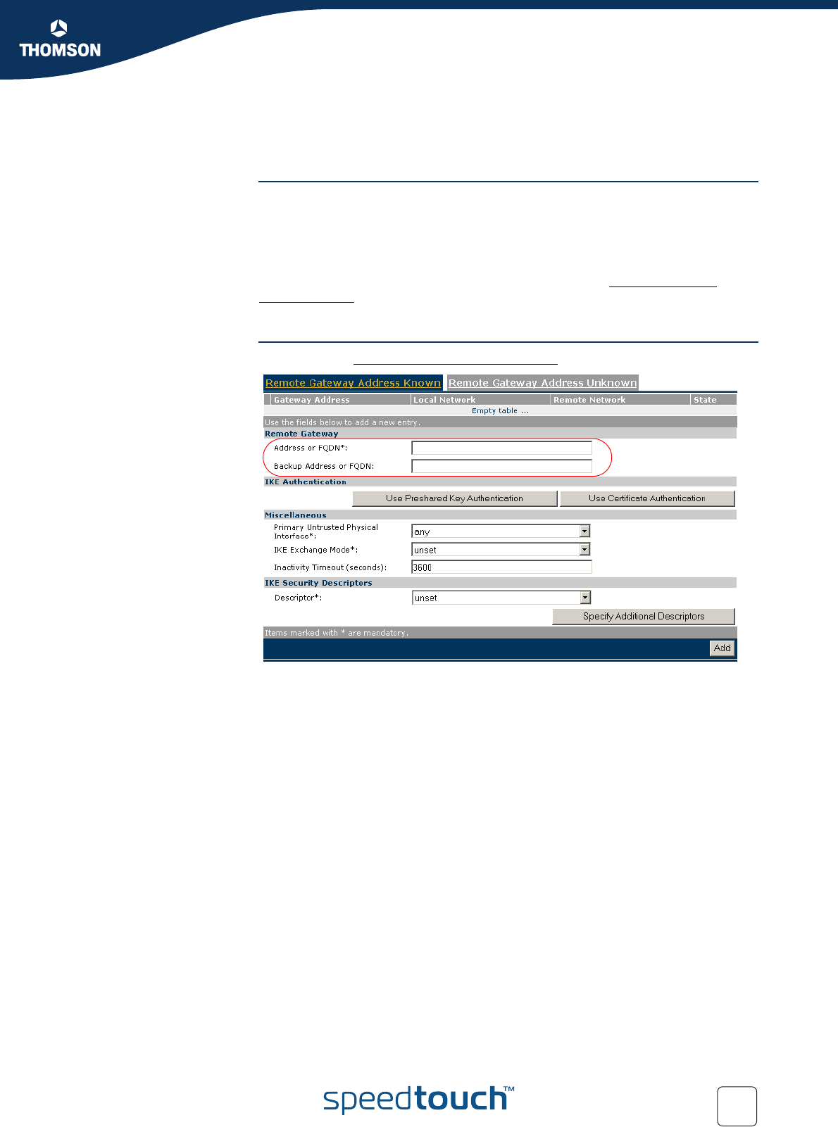 address or its FQDN. In this case, the SpeedTouch™ can connect either as an