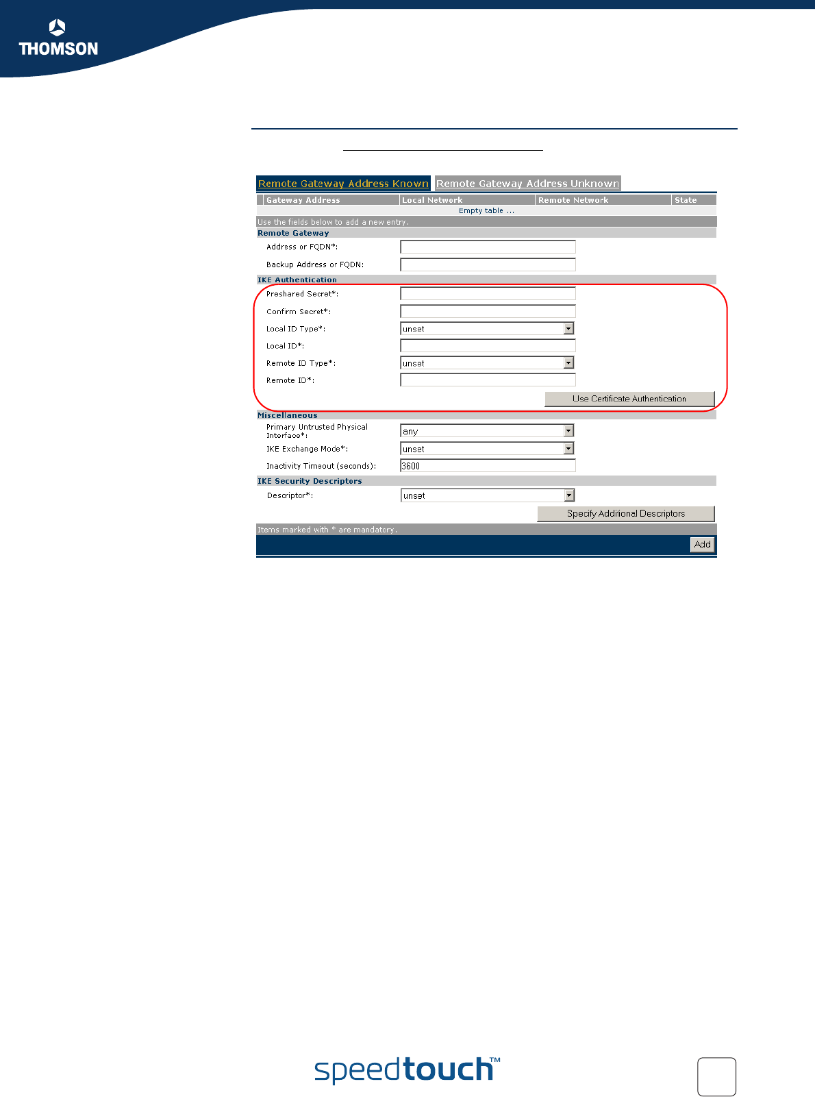 When you click Use Preshared Key Authentication, the initial page is updated in the