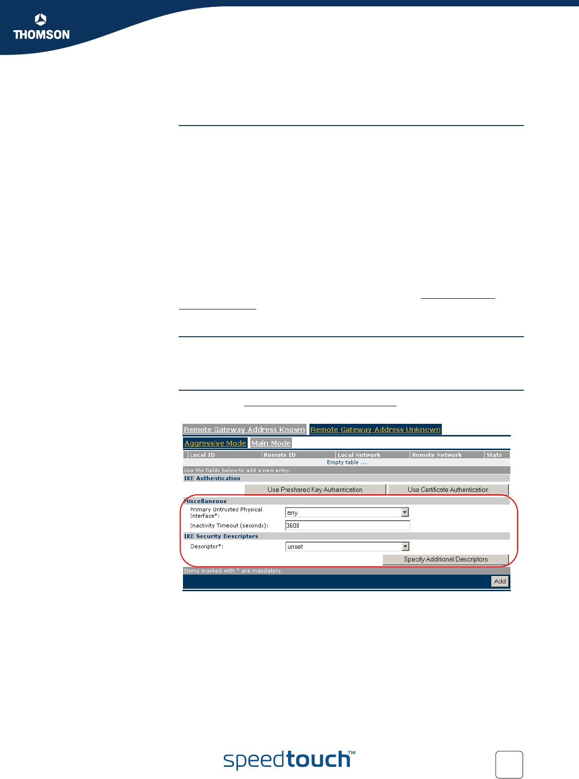 various remote Security Gateways. At the time you configure your SpeedTouch™,