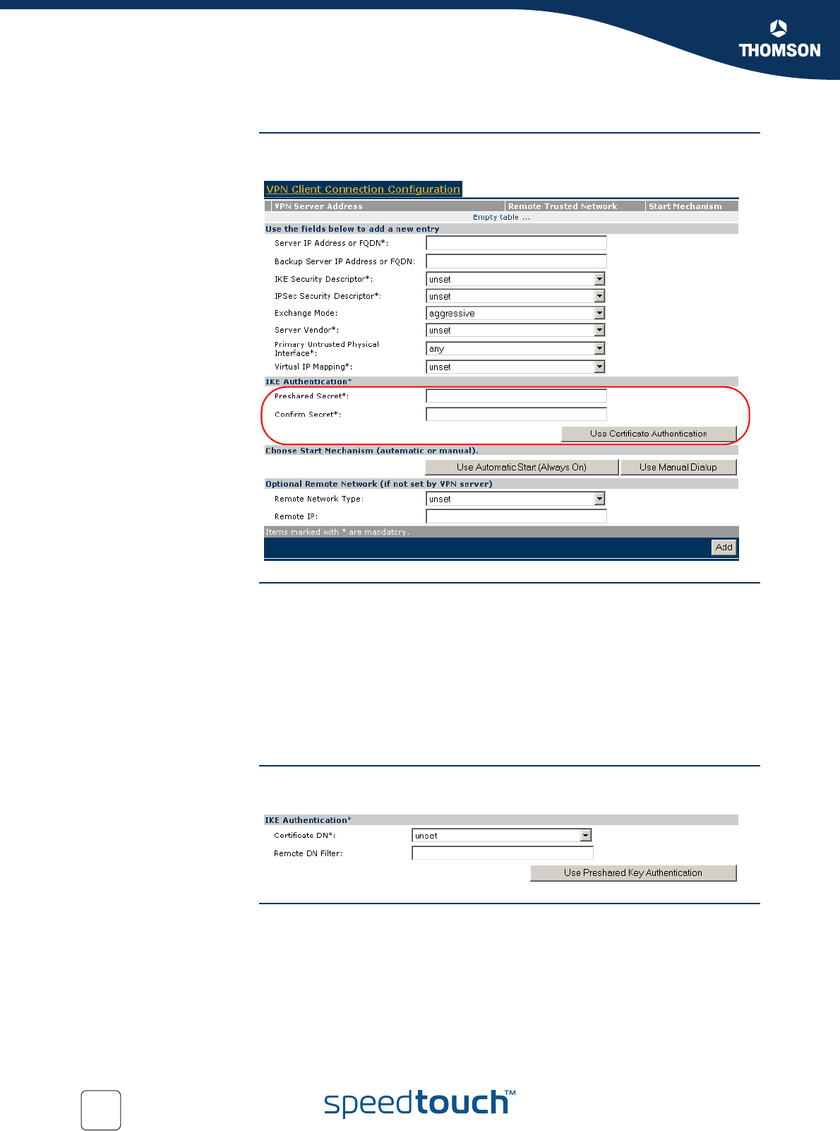 The Preshared Secret value is not shown in clear text in the SpeedTouch™