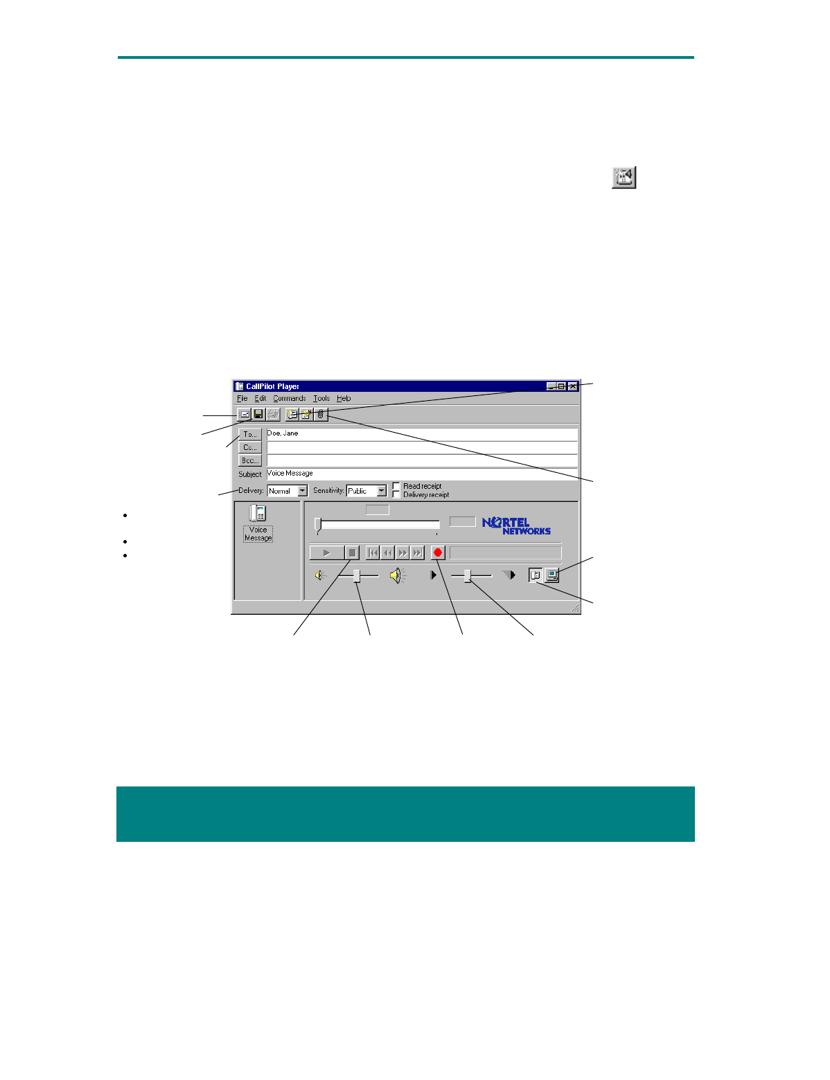 2 In the new message window, click the Telephone icon in the toolbar to open the CallPilot Player.