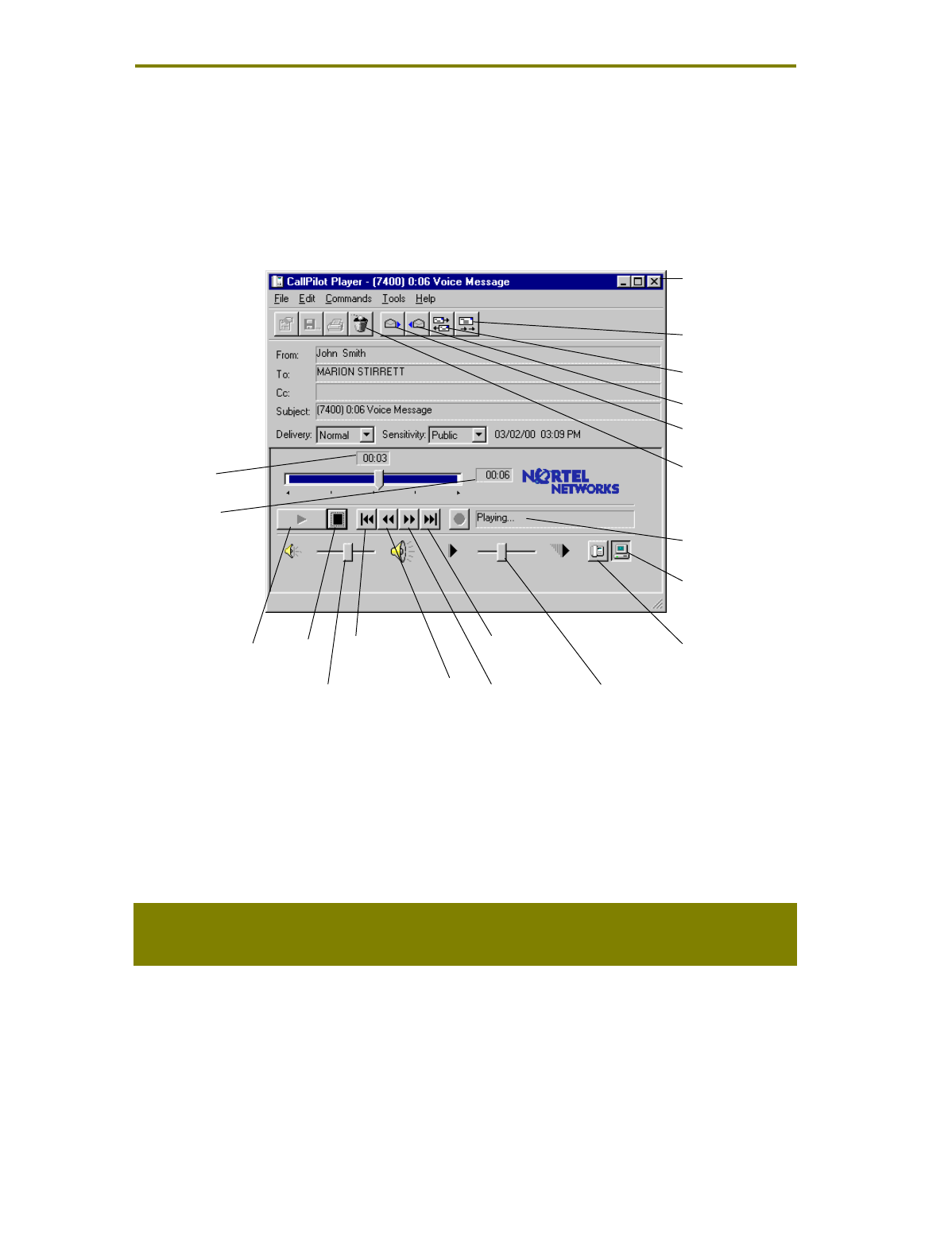 CallPilot Player appears right away. In mixed voice and fax or text messages, click the Voice icon to
