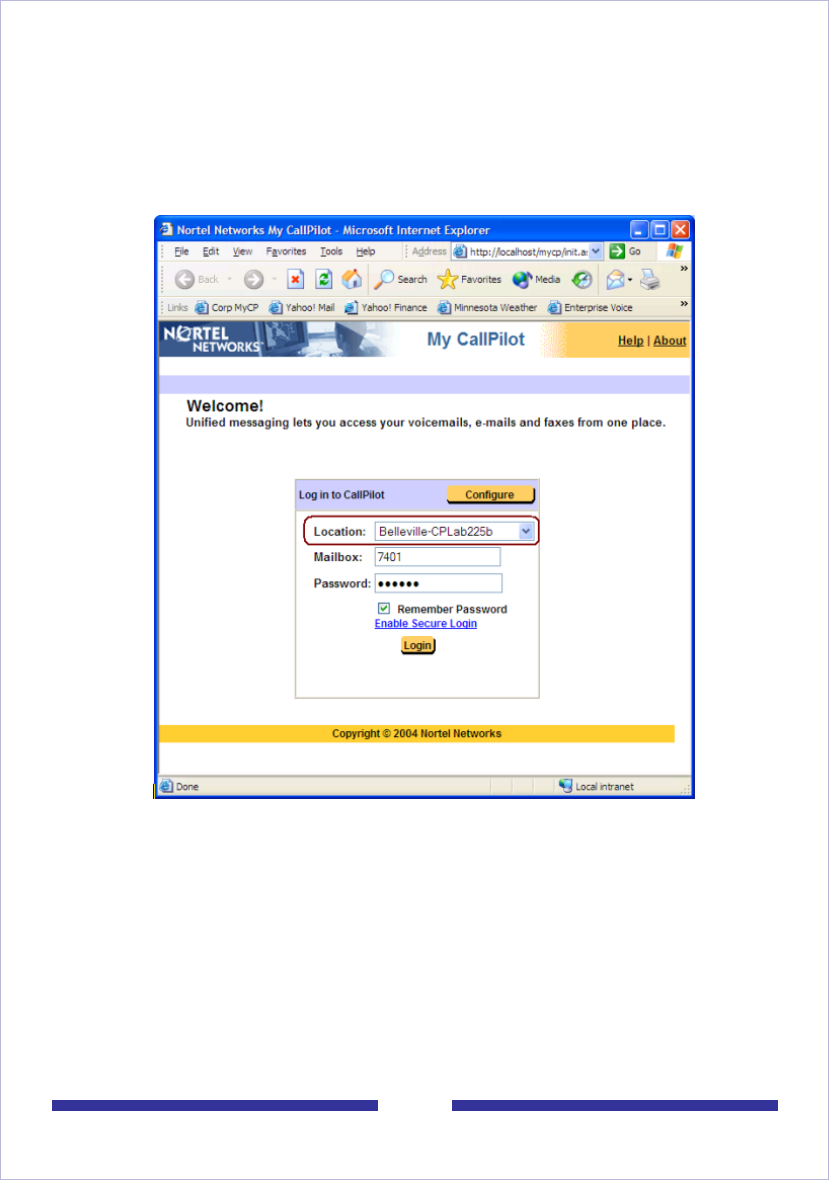 servers. If this applies to your situation, a drop-down menu containing multiple CallPilot