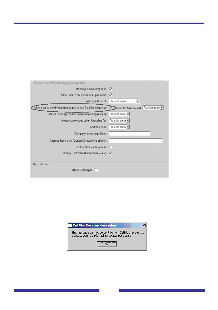 If Allow user to send voice messages to non-CallPilot recipients is unselected (not