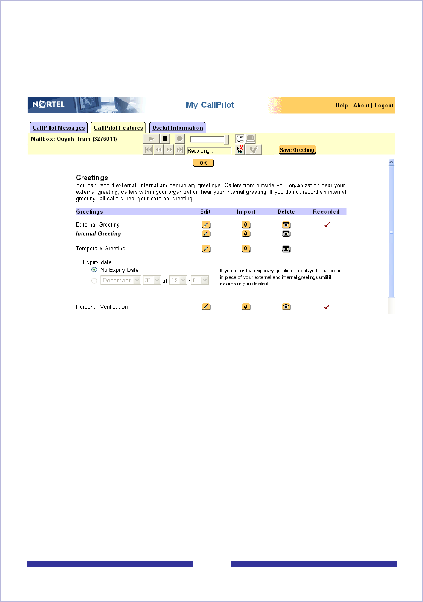 play voice greetings and personal verification. The CallPilot Player can be launched by