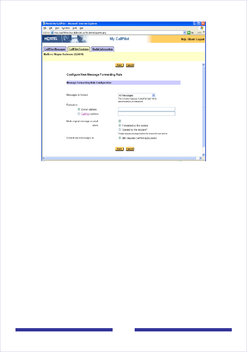 The recipient can be either an E-mail (default) or CallPilot address. All Message