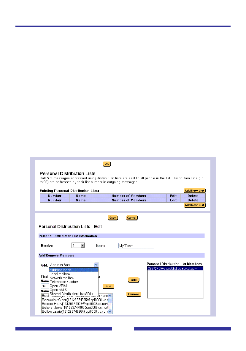 lists are stored for you in the CallPilot Address Book on the CallPilot server. You can