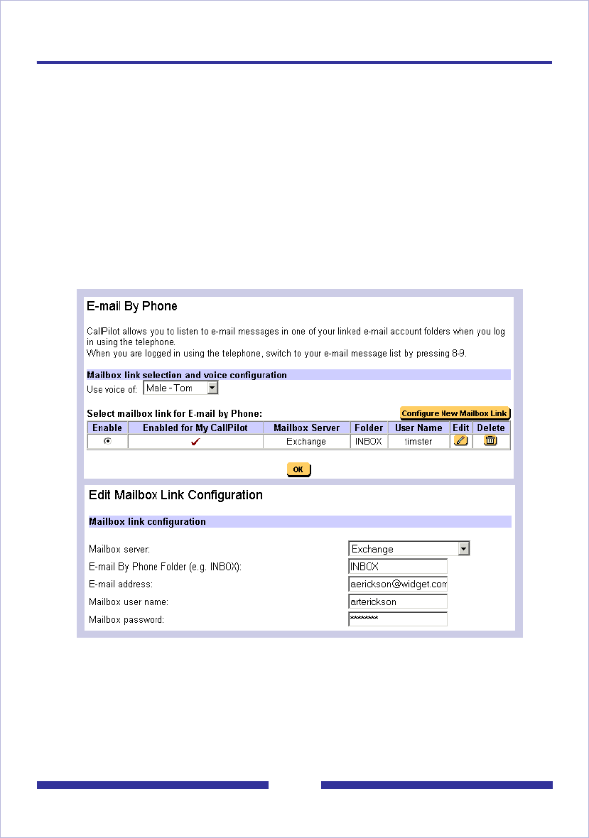 To set up access to your e-mail accounts from CallPilot, see Setting up links to your e-