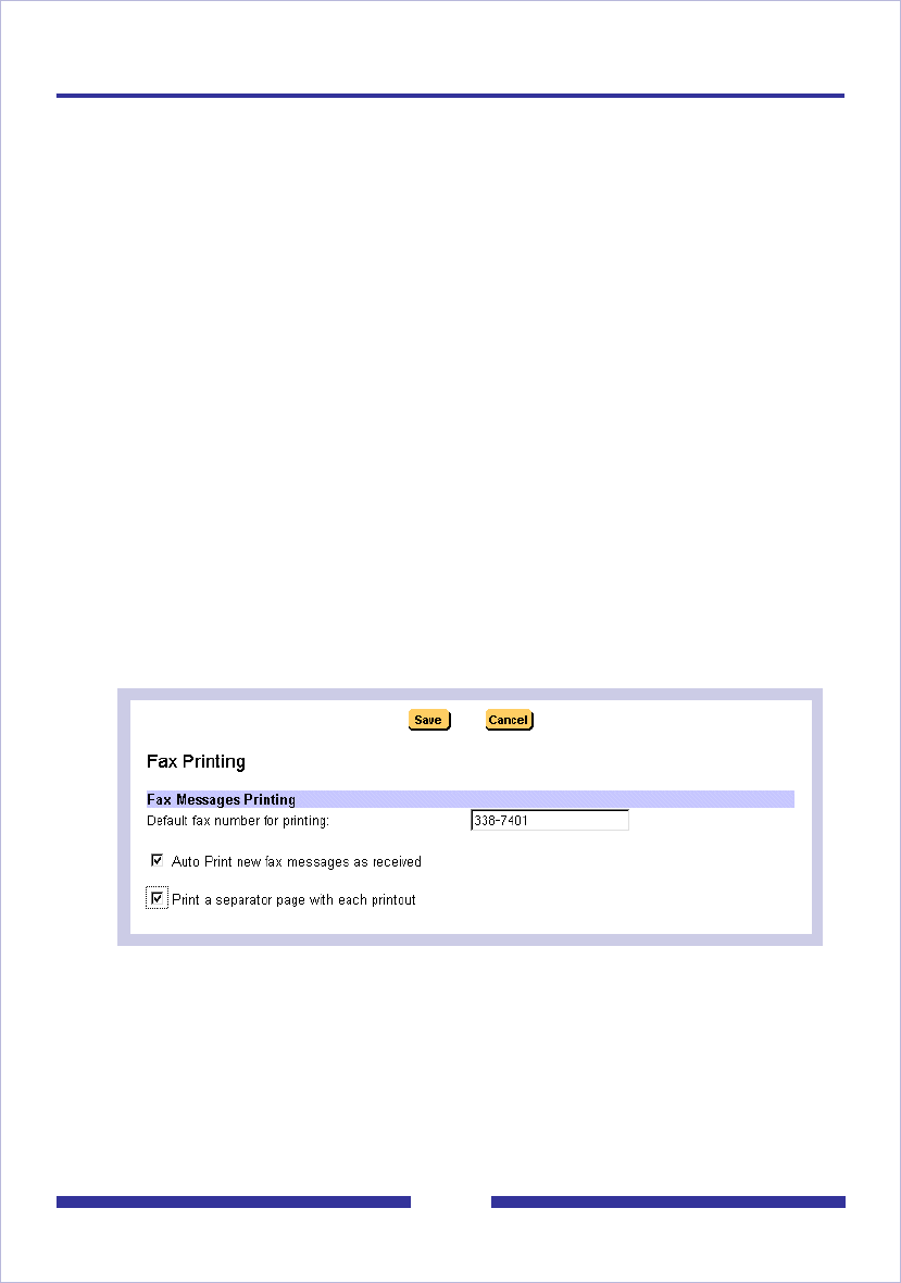 your mailbox and print the fax at a selected fax number. Set options for default fax