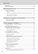 Introduction First Steps A Basic Photography and Playback: Auto Mode C Shooting Suited for the Scene F Taking Pictures of Smiling Faces (Smart Portrait Mode) c More on Playback/In-Camera Editing D Movies Connecting to Televisions, Computers and Printers d Shooting, Playback and Setup Menus Technical Notes i