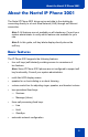 About the Nortel IP Phone 2001 About the Nortel IP Phone 2001 The Nortel IP Phone 2001 brings voice and data to the desktop by connecting directly to a Local Area Network (LAN) through an Ethernet connection. Note 1: All features are not available on all telephones. Consult your system administrator to verify which features are available for your use. Note 2: In this guide, soft key labels display directly above the soft key.
