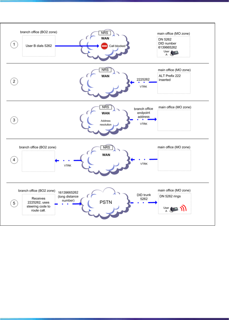 1. IP Phone User B in the BO2 zone dials IP Phone A in the main office