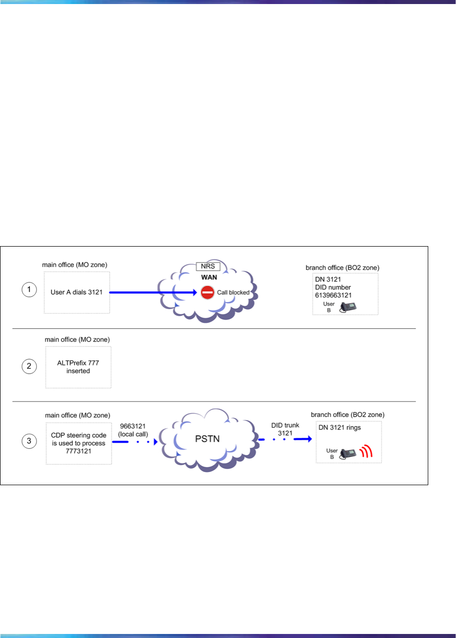 Illustration showing digits dialed and outpulsed with Alternative Call Routing for NBWM